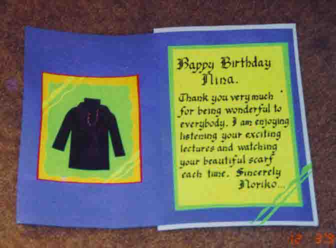 着ていた先生に贈ったカードです。