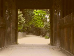 | 期待に胸躍らせつ、一礼し門をくぐります。 記念パチコ。 |