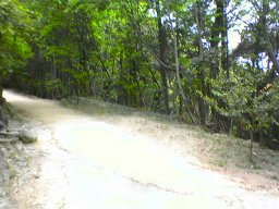 | さてここは一体何処でしょう??? ボブとあるぐれんさんが歩いた道ですー!(多分) 似た風景が多いんだもーん。勝手に認定! そよぐ風や木々の緑に、α波出まくり。 ですが、実はもうこの時点でヘトヘトだったり。 |