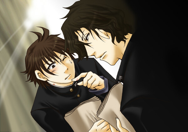 自分の頬に触れる九龍の学ランの背を感じながら、自分の掌で果てた九龍を放し…自分の体の下で苦しそうに息を吐く彼の頭を解放した。