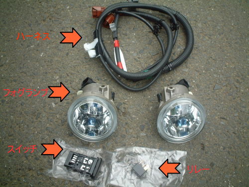 | 前からつけたい、つけたいと思っていたフォグランプをついに取り付けました。 ディーラーに依頼して部品のみ取り寄せてもらいました。 FOGLAMP ASSY 81025-28030 (但し、コーナセンサーなしのKITです) フォグランプKITの箱には、フォグランプ(2個)、ハーネス、スイッチ、リレー、取説、取扱書が入ってます。 (工賃なしで21000円(税込み)) |