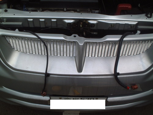 | まず、フロントグリルを外します。(けど、めんどくさかったんで外しませんでした) ソナーが付いてたらバンパーごと外さないといけないみたいです。 |