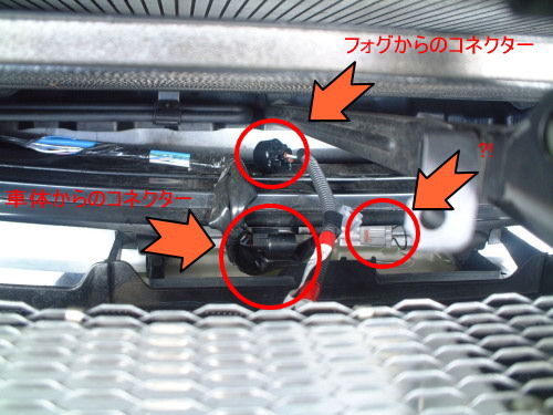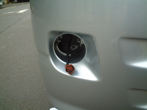 | 青色コネクターをフォグランプスイッチに接続してスイッチ用サービスホールに戻せば終了。 後は、点灯の確認をして元に戻します |