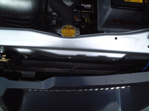 | げっ、よく見るとホーンの取り付けスペースがないやん!! アルファーホーンは絶対つけられへん・・・/(-_-)\ コマッタァ・・・ このグリル取付のときは、ホーンを薄型に交換するか場所を移設せなあかんね。 |