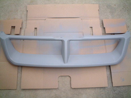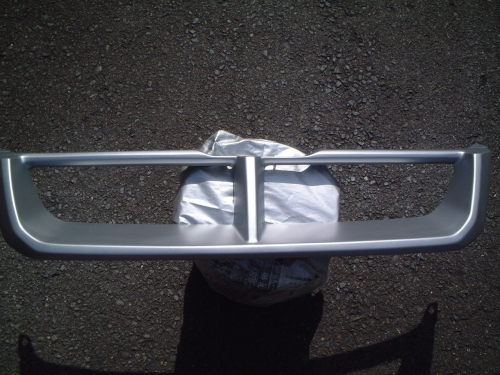 | ヤフオクで、何かいいものないかな〜って物色してると、タイトルに「VOXY?グリル」という商品を発見!! 覗いてみると、なんとNOAHのグリルやんか!! 終了1時間前で4500円。 これは買うしかないね!!と思い6500円でGETしちゃいました。 ただ、この商品、未塗装なので塗装する必要があります。 業者に塗ってもらえばきれいにできるけど、微妙に色が合わないっていうし、塗装代もけっこうするし・・・・これは・・・やはり・・・するしかないね(^ー^* )フフ♪ ということで、自分で塗装することにしました。 |