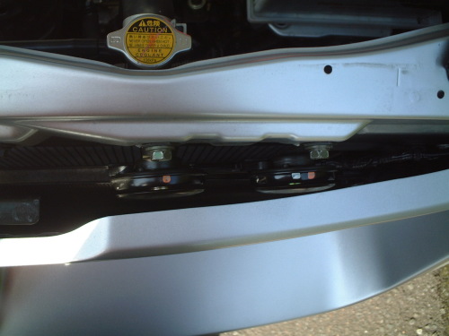 | バンパー部との隙間は若干ありますが、左右固定のボルトで強引に締め付けてます。 特に気になる大きさの隙間ではないと思います。 若干、本体と色は違うかも知れませんが気にせずいきましょ。 クリアーがいまいち足りてないような気がするので、また塗り足すつもりです。 |