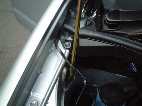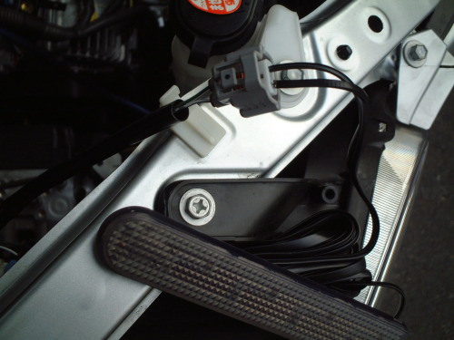 | ボンネットへ引きこんだ写真。 引き込んだら、後はターンランプにケーブルを割り込ませて完了。 |