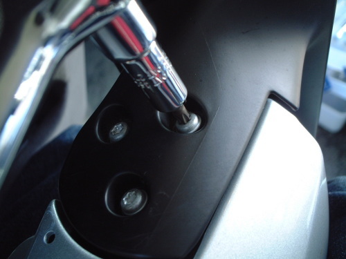| んで、問題の「魔の三角ネジ」↑_(ΦwΦ;)Ψウケケ 私のH14年12月納車の車はトルクスネジ止めになっていたので、現状持ってるドライバーレンチでは歯が立たず!! なめる前に、ホームセンターへ直行してトルクスレンチをGETしました。トルクスレンチがあれば、一本もなめることなく取り外すことができました。 外す要領としては「あせらず、ゆっくり、垂直に立てて回す」これしかありません |