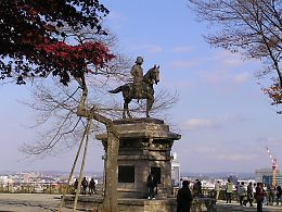 | ↑土井晩翠の銅像 場所:仙台市青葉区川内天守台 青葉城跡内・伊達政宗像の南側 Map アクセス:JR仙台駅から 3km 徒歩では、坂道を登るので1時間位。 バス:るーぷる仙台、青葉城停留所 が便利です。 |