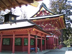 | 【奥州一ノ宮 塩釜神社】:塩釜市→ 超有名な神社ですが歴史は詳く分らないとの 事です。 平安時代に創建され、国府多賀城の精神的支 えとして信仰を集め、伊達藩歴代の信仰を受け 、現在の社殿は、1704年に第四代藩主伊達 綱村・第五代吉村までの9年間をかけて造営さ れたものです。 左は、回廊と唐門。右は本殿。 |