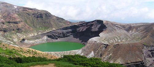 【蔵王山】 蔵王山は、最高峰熊野岳(1840.5m山形県) 刈田岳(1758m宮城県)など幾つかの山から なる連峰です。 山岳道路の蔵王エコーラインが宮城・山形を 結び、刈田岳付近から有料の蔵王ハイラインを 利用して、刈田山頂まで車で入れます。 ←火口湖、五色岳・『お釜』も直ぐ傍ですので、 普通の格好で景観を楽しめます。 |