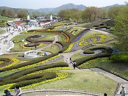 | 【国営みちのく湖畔公園】↓ 釜房湖の脇にある公園。 水仙の花の切断面をデザインした彩の広場 を始め花や、芝生でのくつろぎ、水と楽しむ等 が出来ます。 |