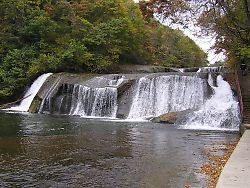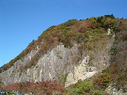 ←【滑津大滝】 七ヶ宿湖の上流にある二段の滝。 ↓【材木岩】 七ヶ宿湖ダム傍にある節理状の岩。 特に紅葉の時期が美しい |