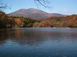 6月下旬から、上手くすると8月中旬までは 高嶺の花・コマクサに出会えます。 ビュースポットは、宮城県側の駒草平の群生地 や、刈田山頂のレストランの付近、馬の背を熊野 岳に向かって登り右手の一帯等になります。 【蔵王連峰の南端・不忘山と、山麓の長老湖】↓ 南蔵王を縦走(本格的に)するか、車で七ヶ宿 町から入ると、特に紅葉の時期には素晴らしい 景観が楽しめます。 |
