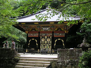 瑞鳳殿を出て少し移動すると、伊達藩主二代目忠宗公(1599-1658)の廟「感仙殿」に到着します。こちらも戦災で焼失、昭和60年に再建されました。 |