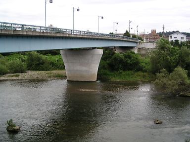 瑞鳳殿を後にし、広瀬川を眼下に評定河原橋(右の写真)をわたり、広瀬川に掛かる別の橋、大橋へと向かいます。 |