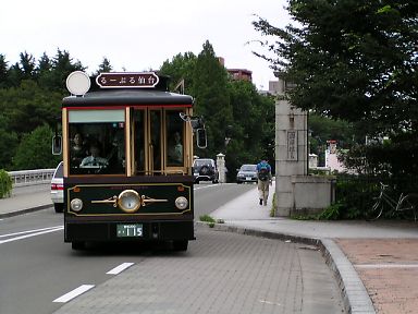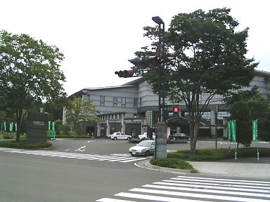 左の写真は、バスストップ前の「国際センター」。この日は全国オンブズマン大会が開催されていた。