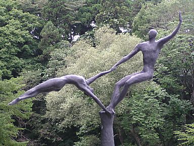 右の写真は仙台市博物館入り口「五色沼」にある『フィギュアスケートの像』。ここ、仙台の五色沼(青葉城の外堀)は、日本で始めてフィギュア