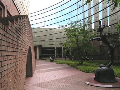 | 宮城県美術館の入り口。 | 中庭の様子。多数の彫刻群が展示されています。 |