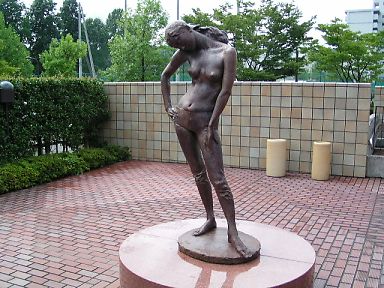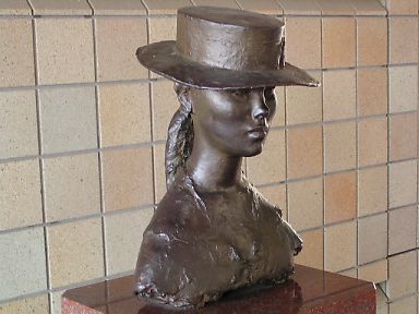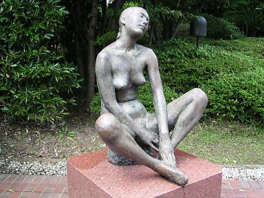 | 記念館前の 「若い女」 1971年 佐藤忠良 | 玄関前の 「カンカン帽」 1975年 佐藤忠良 |