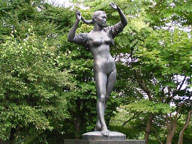 | 「帽子・立像」 1974年 佐藤忠良 | 「大鹿と娘」 1990年 佐藤忠良 |