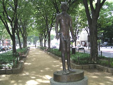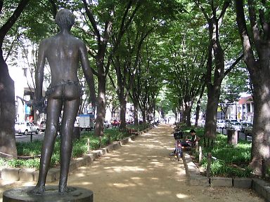 | 撮影時は、暑い昼下がりで人並みは少なかったですが、日陰を求める市民が思い思いに憩っていました。 |