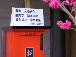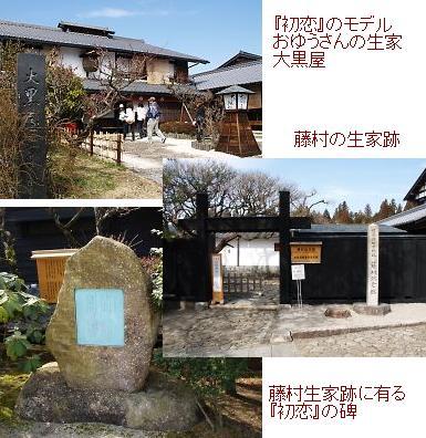 | 三吉神社(※塩釜神社)のおみくじには『初恋成就』のご利益も… ※伊達・仙台藩が塩釜市の塩釜神社再建時に御神体を一時保管したことから塩釜神社と呼ばれています。 生家の有る馬籠宿・島崎藤村記念館との交流も有り、宮城県白石市の和紙にミヤギノハギを配した色紙を記念館 に寄贈しています。(写真の右上。 拡大写真は こちら ) |