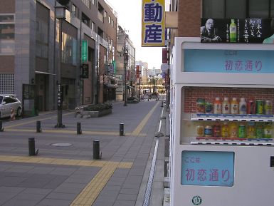 | その下宿屋跡地一帯が『初恋通り』と『藤村広場』として整備されています。 ↑自販機にも初恋通りの表示が有ります この地で、日本初の近代詩のさきがけと言われる『若菜集』の大部分が書かれたことから『日本近代詩発祥の地』と されています。 |