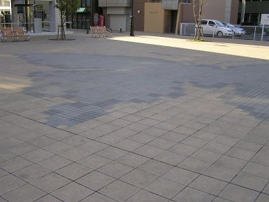 | 初恋通りの神社前を左折すると『藤村広場』に出ます。 広場には『若菜集』の表紙に使われた『蝶』をブロックで現しています。 |