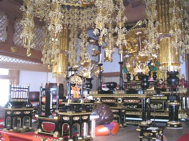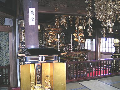 | (旧本堂)貞能堂とその内部。この堂の下に貞能公が埋葬されている。 |