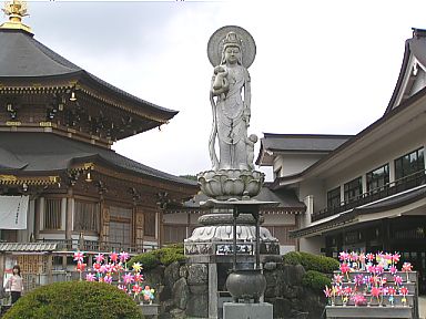 | 平成11年に約六年掛けて完成した新本堂。 本堂の前には、子宝観音様があります。