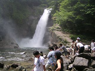 涼を求めて沢山の人々が… 滝つぼでは、霧が舞い上がります