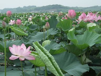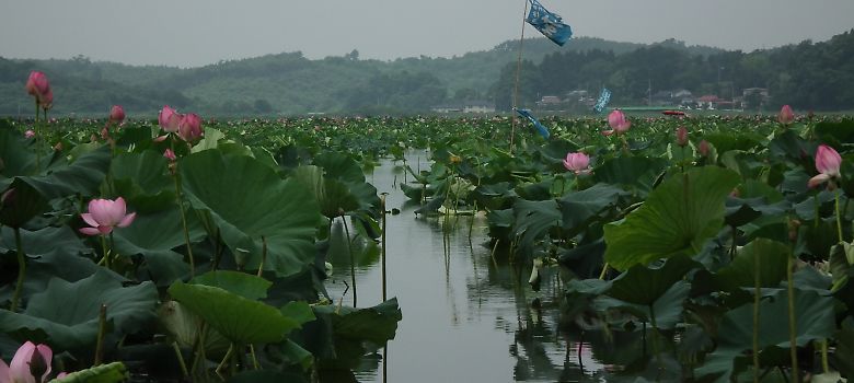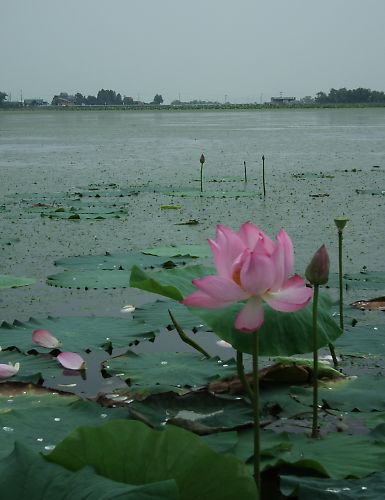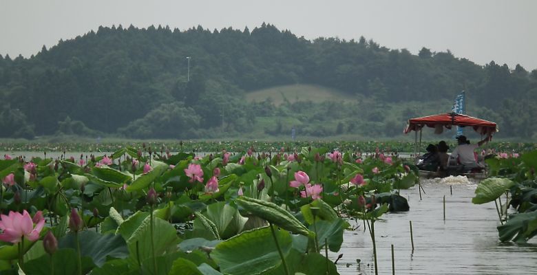 お陰で、船の先端でゆっくりハスの花観賞です。 |