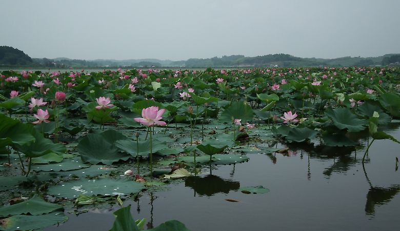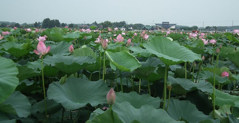 サンクチュアリセンターつきだて館の裏手の田圃に蓮田があり、そこの花を2枚。