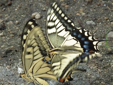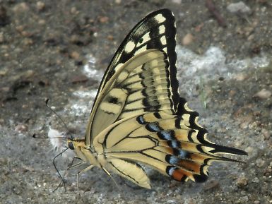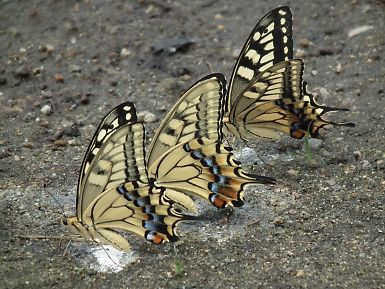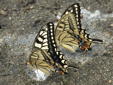 内沼の水際で、アゲハ蝶が乱舞していました。時々、地面に止って水を吸っています。