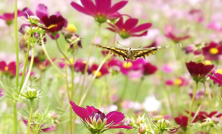> 大崎市 松山御本丸公園コスモス園-2 > コスモスと蝶