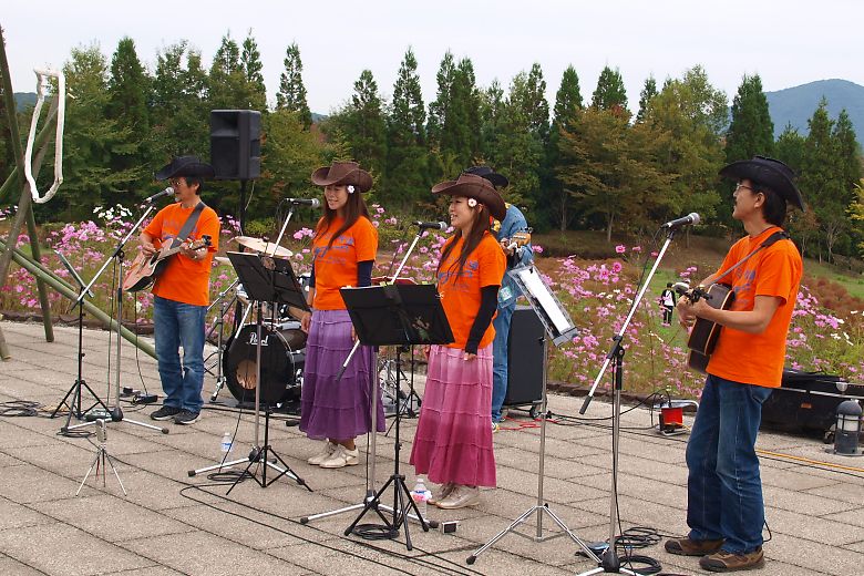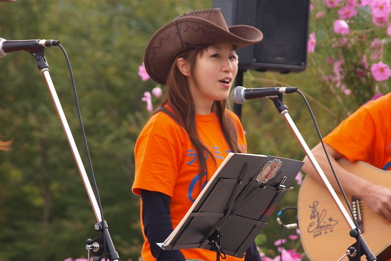 爽やかな歌声が、コスモスの花にマッチしていました。