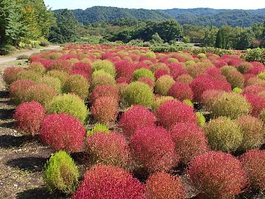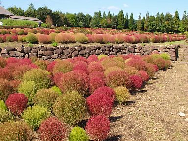 今年(2010年)からみちのく公園・ふるさと村の段々畑に1万1千株のコキアが植えられ来園者を楽しまさせています。