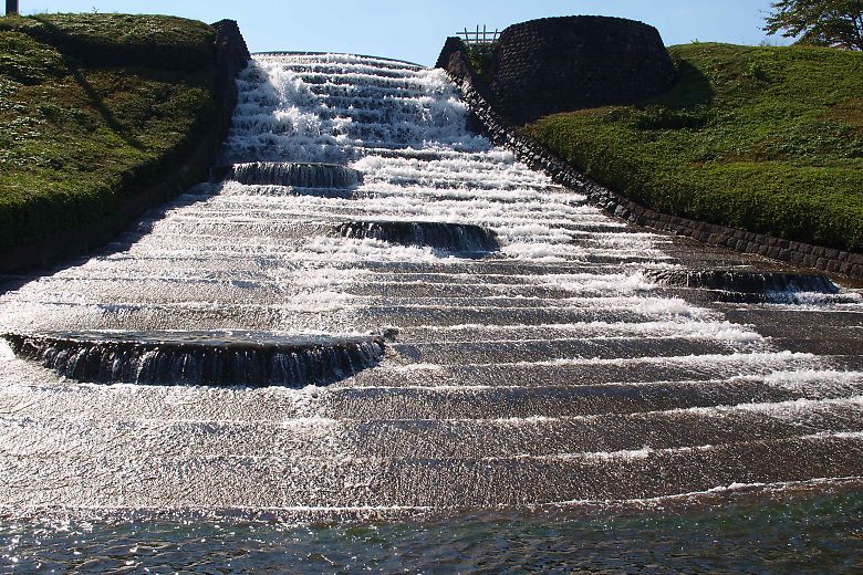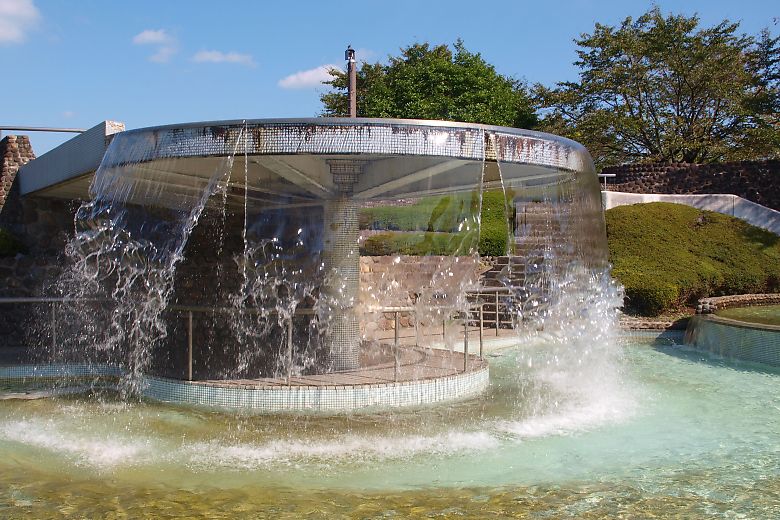 | 潮見の滝を見ながら、水のひろばゾーンに入ります。 | |