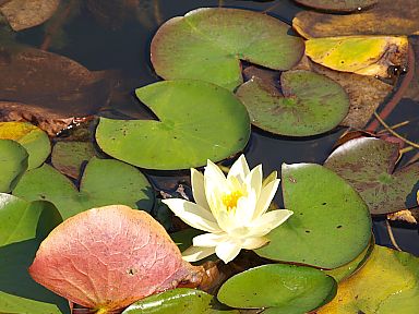 | やすらぎの池には、スイレンの花が咲いています。 | |