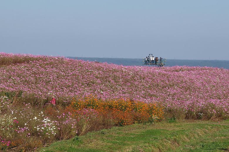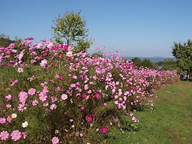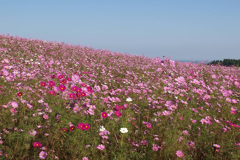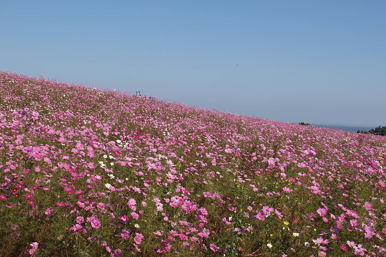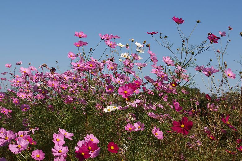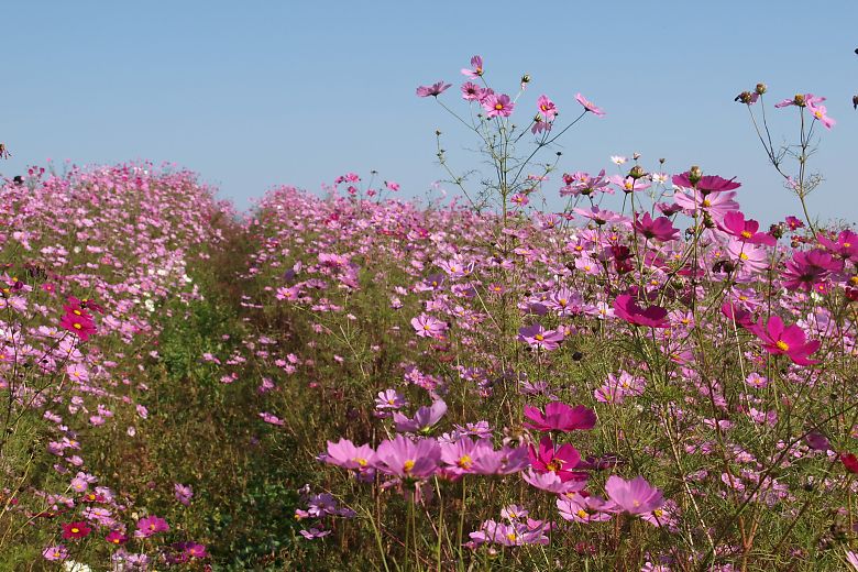 コスモスの普通種・センセーションが見頃ですとの情報で前回から11日後、23日に二度目の訪問です。