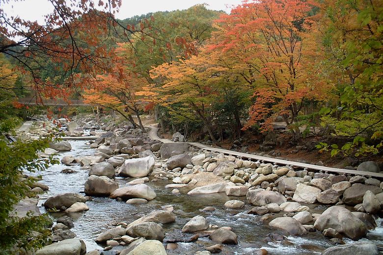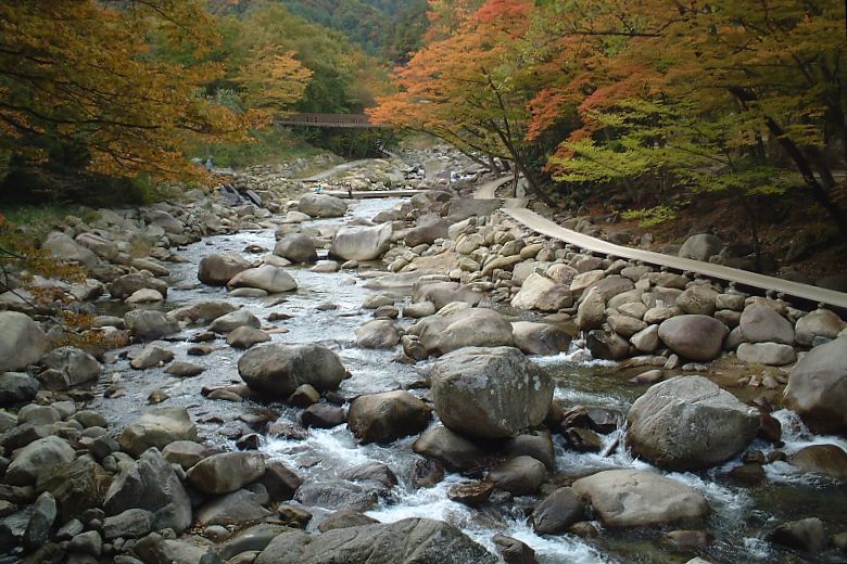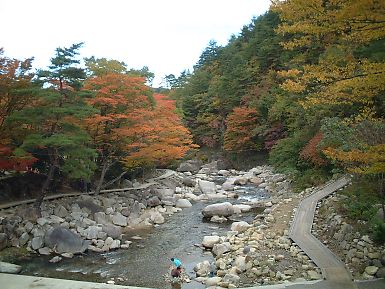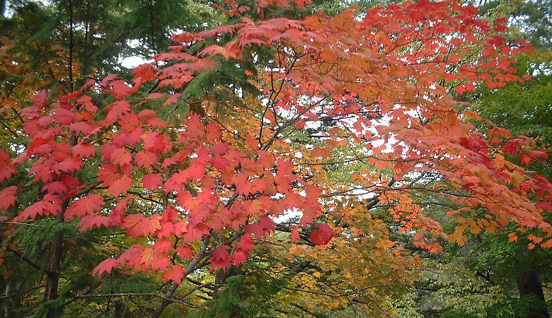 阿武隈山系に包まれた、丸森町・不動尊公園。春の新緑、秋の紅葉と季節の彩りを見せます。