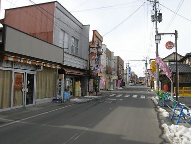 写真下は六日町通りの町並みです。残念ながら古い建物は見当たらず、見世蔵は三浦酒舗だけのようです。