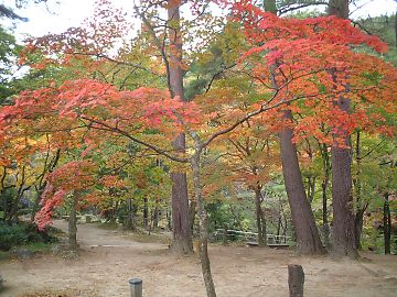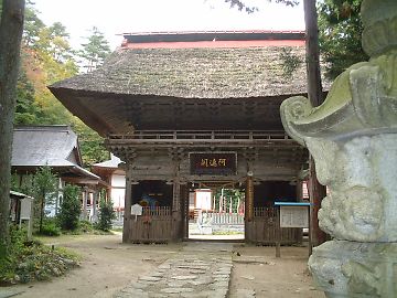 名前の由来、不動尊・仁王門。 駐車場前のドウダンツツジが燃える。