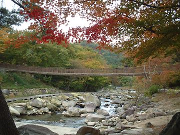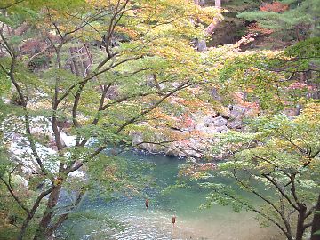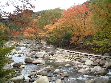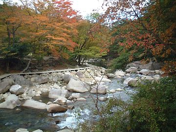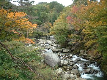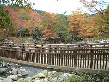 阿武隈山系に包まれた、丸森町・不動尊公園。春の新緑、秋の紅葉と季節の彩りを見せる。