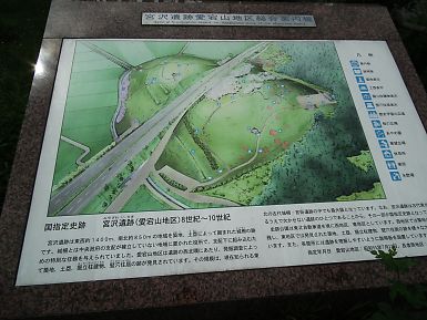 | 宮沢遺跡は、昭和49〜51年の東北自動車道建設工事に伴う発掘調査で発見された遺跡。 奈良時代〜平安時代の城柵・官衙遺跡で、大崎平野の北端部の標高50m前後の長岡丘陵上に立地し全形は やや歪んだ長方形で、東西1,400m、南北850mの規模。 外郭区画施設は、築地や土塁で、櫓も所々に設けられている。 東北地方のこの種の遺跡の中では最大規模だそうである。 |