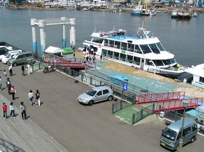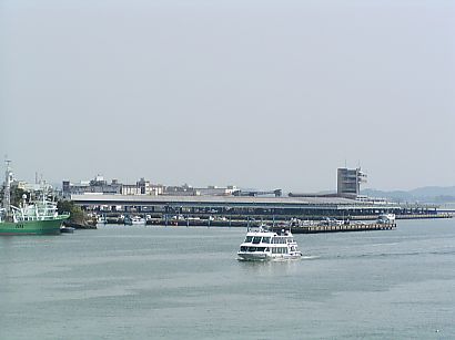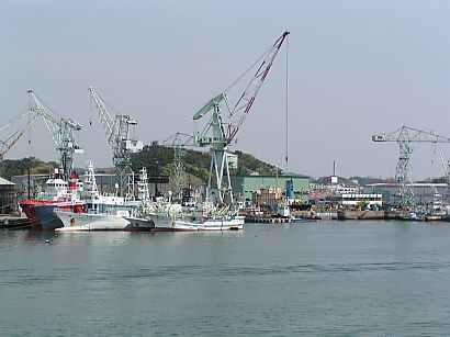 | 塩釜市(塩竈)は、面前に寒流・暖流の合流点があり沖合いの金華山沖は、世界三大漁場の一つとなっていることから漁業で栄えた町です。また、松島湾に面し日本三景「松島」観光の拠点でもあります。 写真左上は、魚市場。右はドッグ。 | |