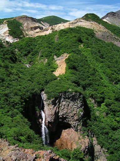 この写真は、途中の「駒草平」から不動ノ滝を望む。