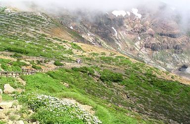 夏山観光の目玉「御釜」は、宮城県側にあります。途中の景観も宮城側に見所が多いでしょうか。
