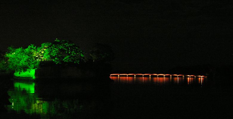 | 日本三景・松島で、2006.10.28-11.19間『松島紅葉ライトアップ』が開催されています。 全体としてはまだまだ”青いもみじ”が多い中、瑞巌寺隣の円通院では色付き始めています。そんな松島の秋の夜の光景です。 |